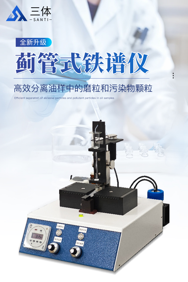 薊管式鐵譜儀是一套完整的鐵譜分析系統(tǒng),用以分離和評(píng)定在用潤(rùn)滑油、液壓油、冷卻液或燃油中的磨損顆粒和污染物顆粒,由薊管式鐵譜儀、顯微鏡、工業(yè)攝像頭、加熱盤(可選)和圖像采集軟件組成。為了確保譜片的制作質(zhì)量,經(jīng)稀釋處理后的被測(cè)油液在自身重力作用下直接通過(guò)薊型管,勻速流過(guò)鐵譜譜片,油液中鐵磁性顆粒在磁場(chǎng)作用下被沉積到譜片上,有效避免了制譜過(guò)程中外界作用力對(duì)磨粒造成的破損、變形等傷害;通過(guò)控制清洗劑的流量和流速,對(duì)譜片進(jìn)行徹底沖洗;譜片干燥后進(jìn)行分析。將制備好的譜片平穩(wěn)的放在顯微鏡的載樣臺(tái),通過(guò)使用顯微鏡的透射光、反射光、偏振光、紅綠光源以及譜片加熱等分析手段,參照標(biāo)準(zhǔn)的磨粒圖譜,對(duì)磨損顆粒進(jìn)行深入分析。