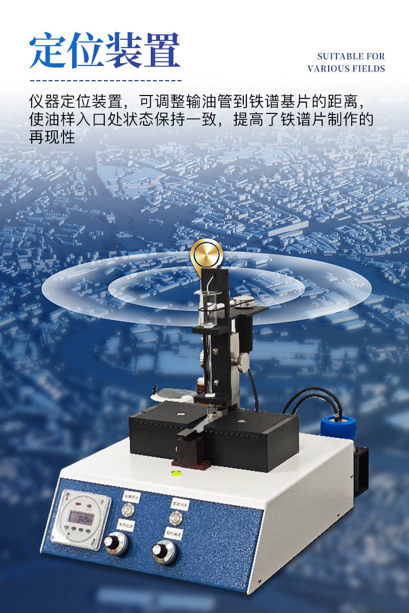(11)儀器定位裝置,可調(diào)整輸油管到鐵譜基片的距離,使油樣入口處狀態(tài)保持一致,提高了鐵譜片制作的再現(xiàn)性;