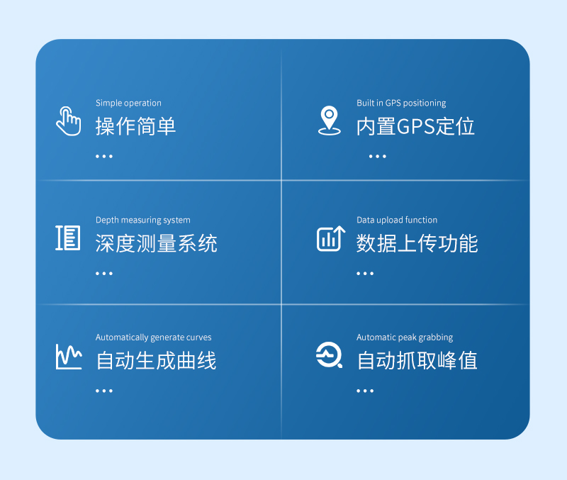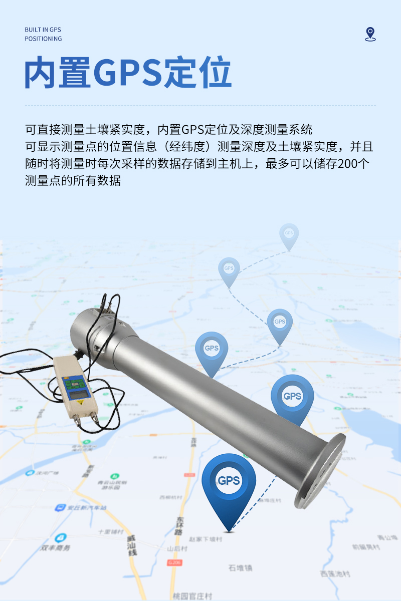 可直接測量土壤緊實度,內置GPS定位及深度測量系統,可顯示測量點的位置信息(經緯度)測量深度及土壤緊實度,并且可以隨時將測量時每次采樣的數據存儲到主機上,*多可以儲存200個測量點的所有數據。