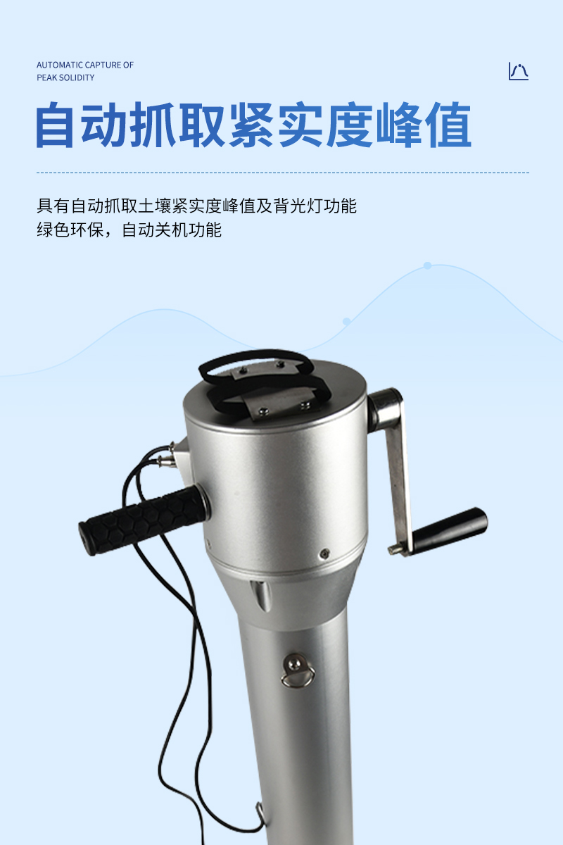 具有自動抓取土壤緊實度峰值及背光燈功能,綠色環保,自動關機功能。